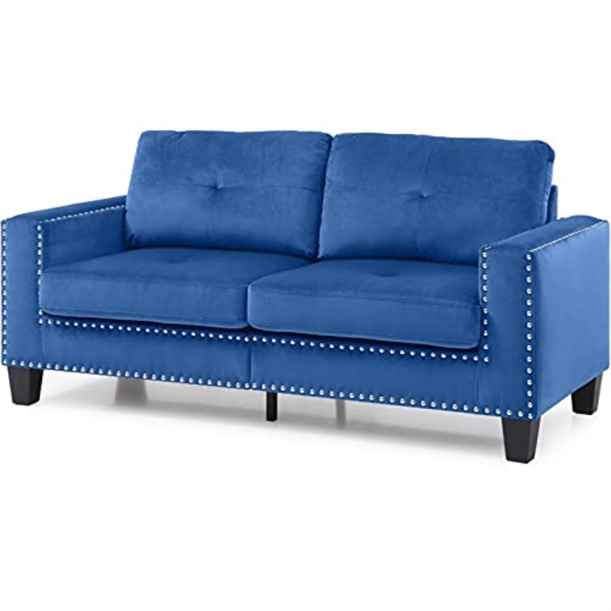 Glory Furniture Nailer Velvet Sofa in Navy Blue