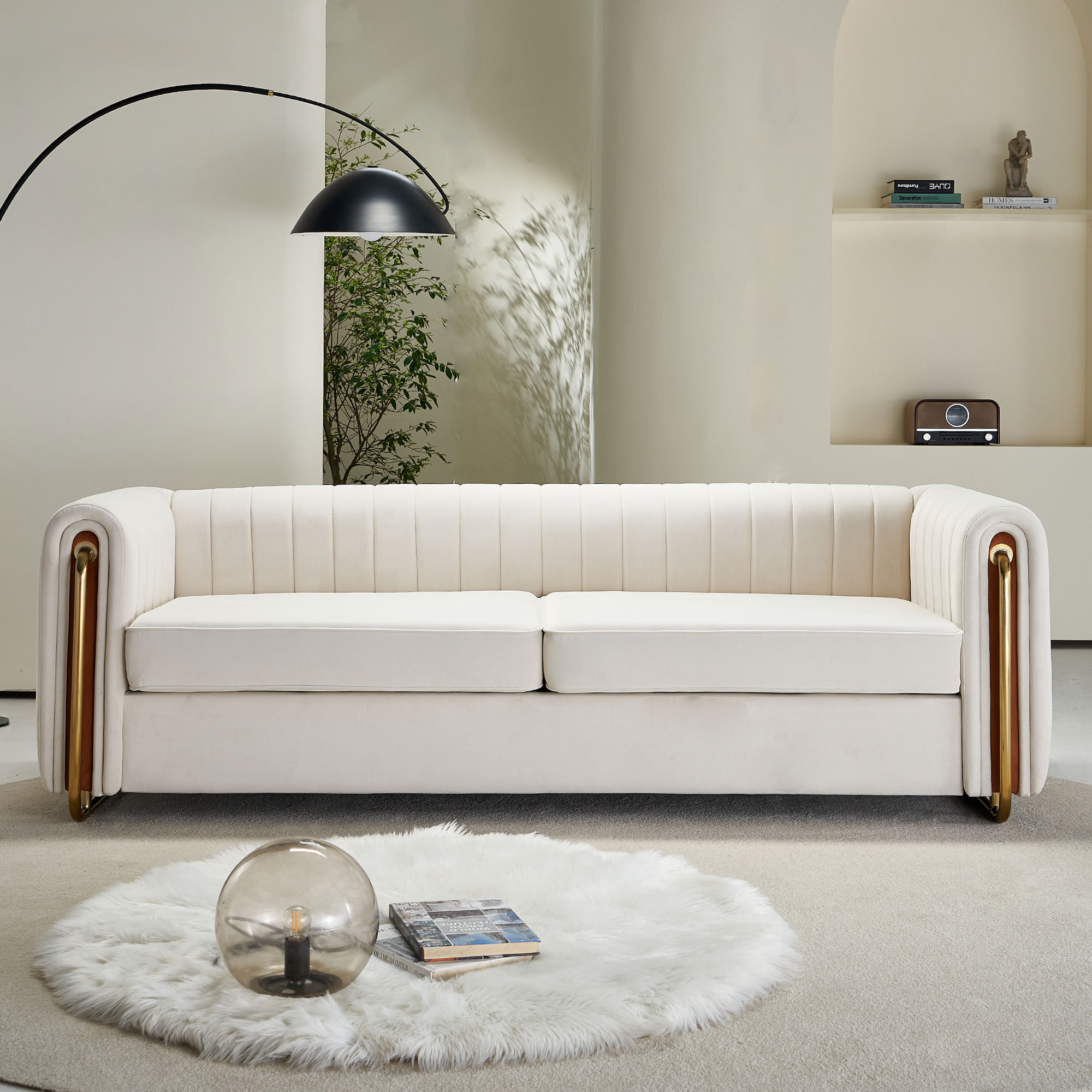 Pemberly Row Modern / Contemporary Velvet Living Room Sofa in Beige