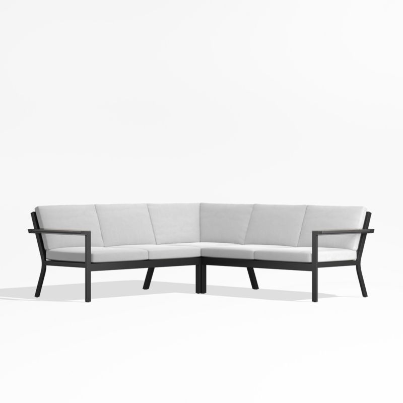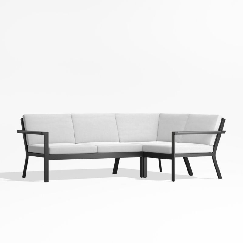 Alfresco Black Metal 3-Piece Petite L-Shaped Outdoor Sectional Sofa with White Sunbrella ® Cushions