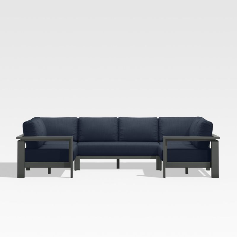 Alfresco Black Metal 4-Piece L-Shaped Outdoor Sectional Sofa with Navy Blue Sunbrella ® Cushions
