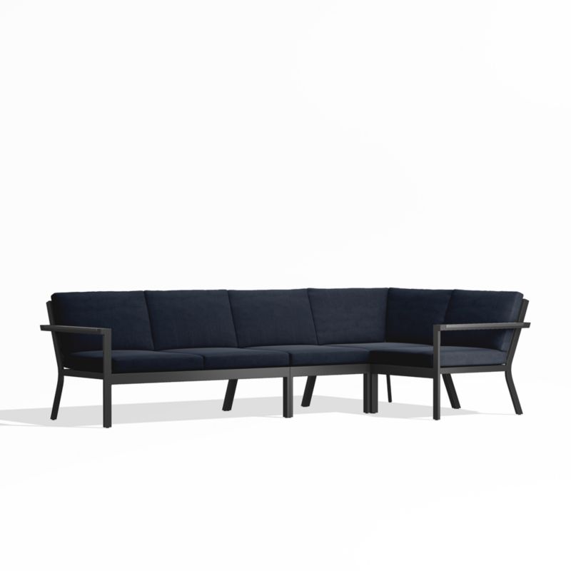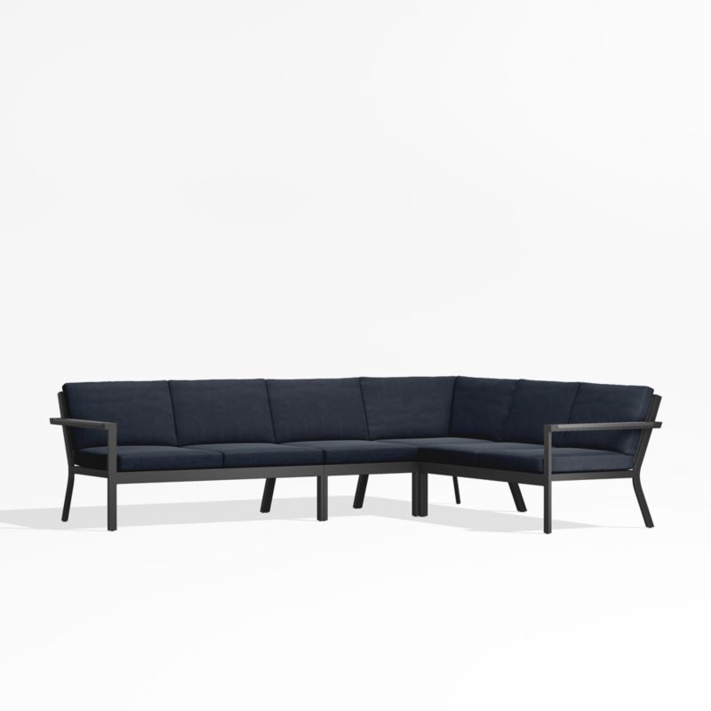 Alfresco Black Metal 4-Piece Petite L-Shaped Outdoor Sectional Sofa with Navy Blue Sunbrella ® Cushions