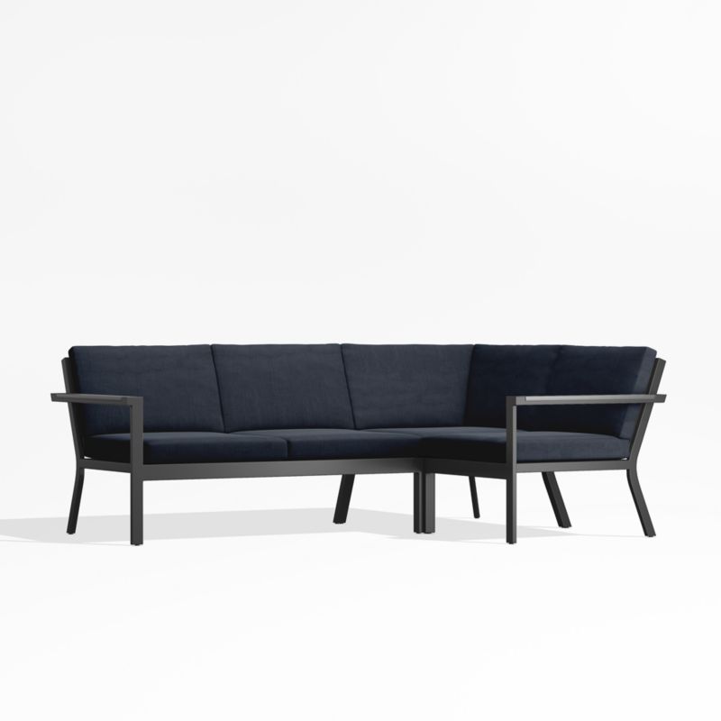 Alfresco Black Metal 3-Piece Petite L-Shaped Outdoor Sectional Sofa with Navy Blue Sunbrella ® Cushions