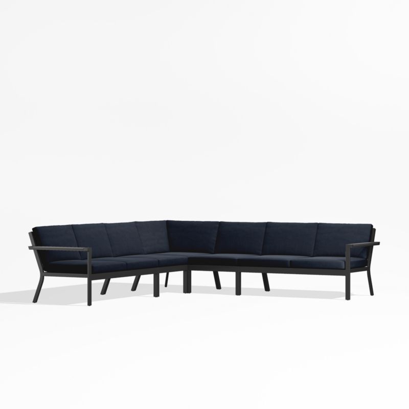 Walker Black Metal 5-Piece Outdoor Sectional Sofa with Navy Blue Sunbrella ® Cushions