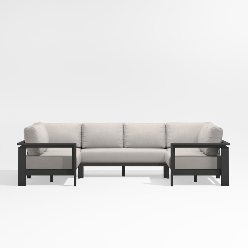 Walker Black Metal 5-Piece Outdoor Sectional Sofa with Flax Beige Sunbrella ® Cushions