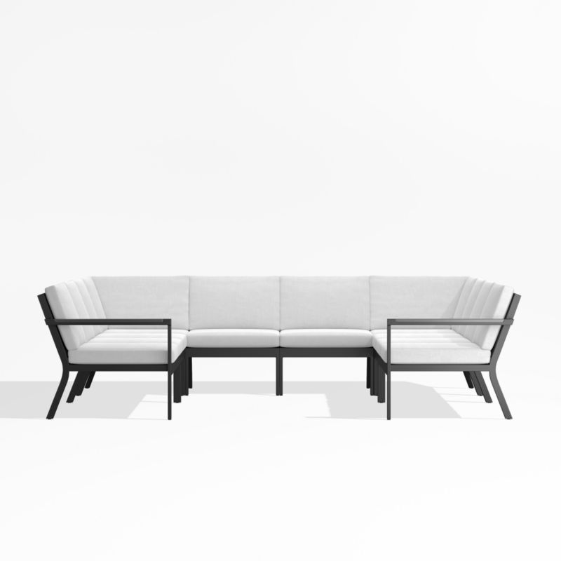 Alfresco Black Metal 6-Piece Petite U-Shaped Outdoor Sectional Sofa with White Sunbrella ® Cushions