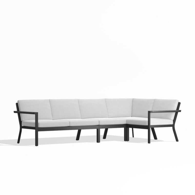 Alfresco Black Metal 4-Piece L-Shaped Outdoor Sectional Sofa with White Sunbrella ® Cushions