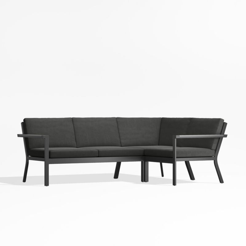 Alfresco Black Metal 3-Piece Petite L-Shaped Outdoor Sectional Sofa with Charcoal Grey Sunbrella ® Cushions