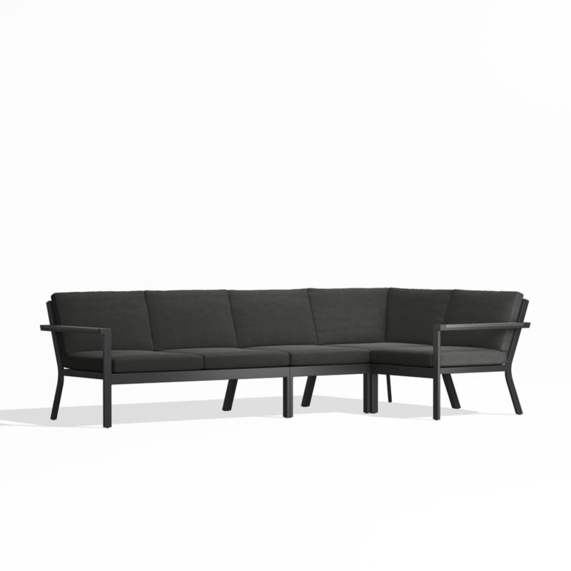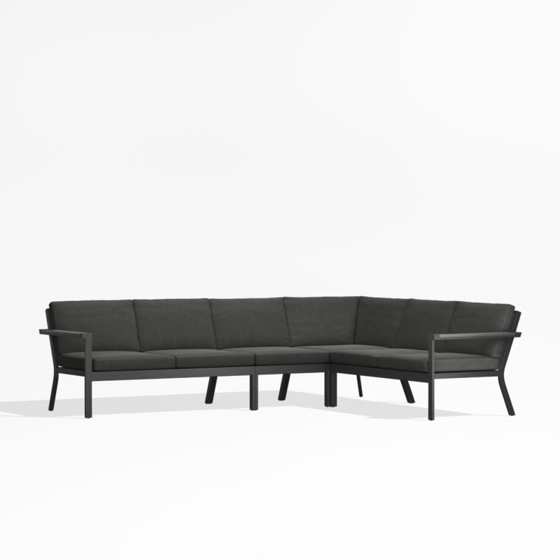 Alfresco Black Metal 4-Piece Petite L-Shaped Outdoor Sectional Sofa with Charcoal Grey Sunbrella ® Cushions