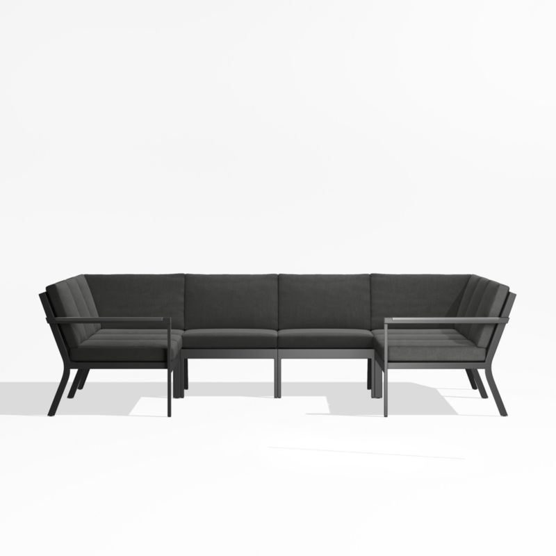 Alfresco Black Metal 5-Piece L-Shaped Outdoor Sectional Sofa with Charcoal Grey Sunbrella ® Cushions