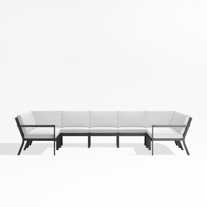 Alfresco Black Metal 7-Piece U-Shaped Outdoor Sectional Sofa with White Sunbrella ® Cushions