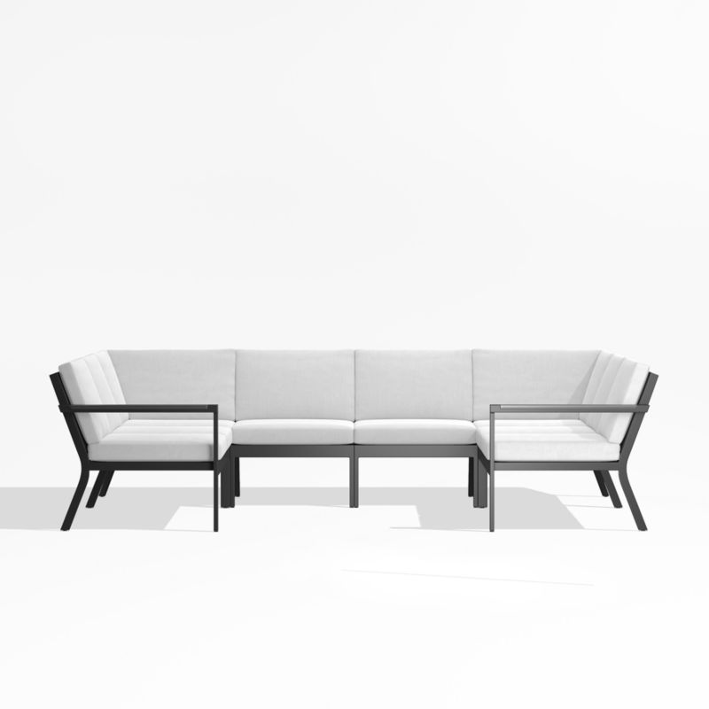 Alfresco Black Metal 5-Piece L-Shaped Outdoor Sectional Sofa with White Sunbrella ® Cushions
