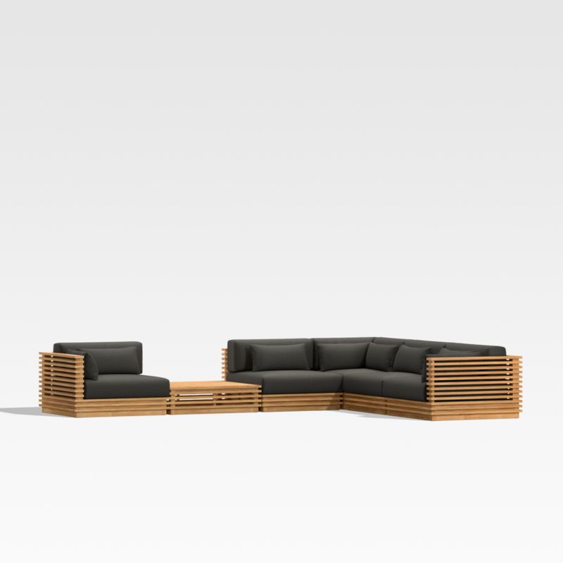 Batten 6-Piece L-Shaped Teak Outdoor Sectional Sofa with Corner Coffee Table & Charcoal Cushions
