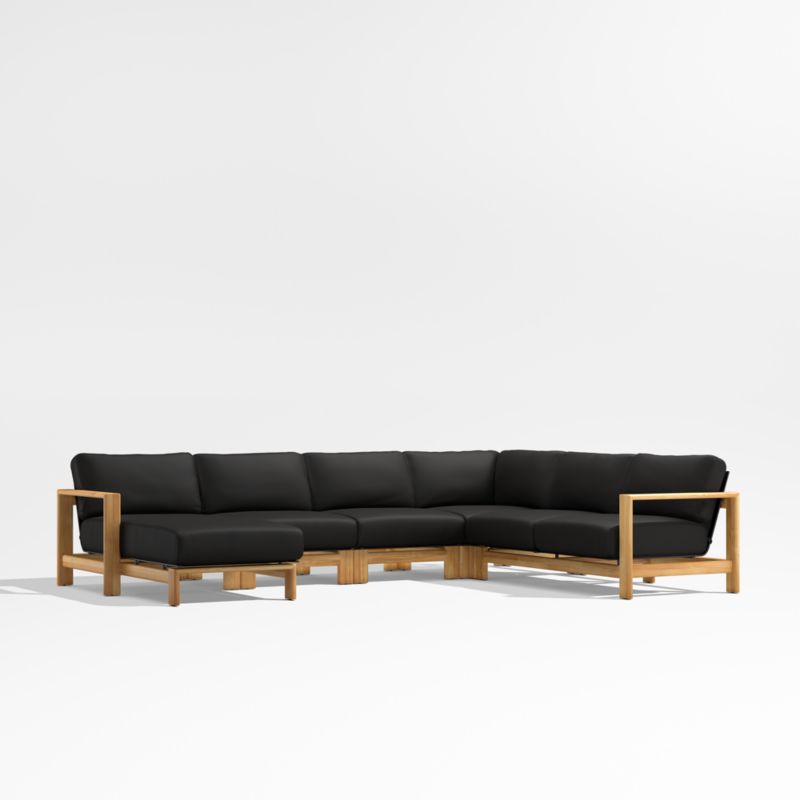 Anguilla Teak 5-Piece Left-Arm Chaise Outdoor Sectional Sofa with Black Cushions