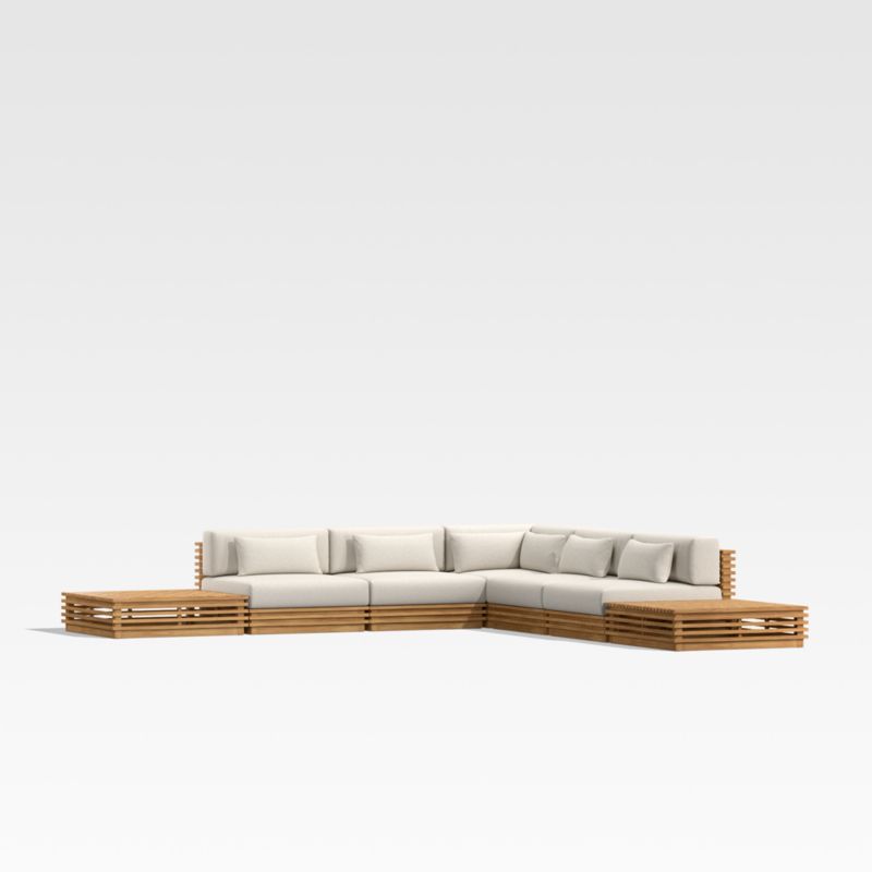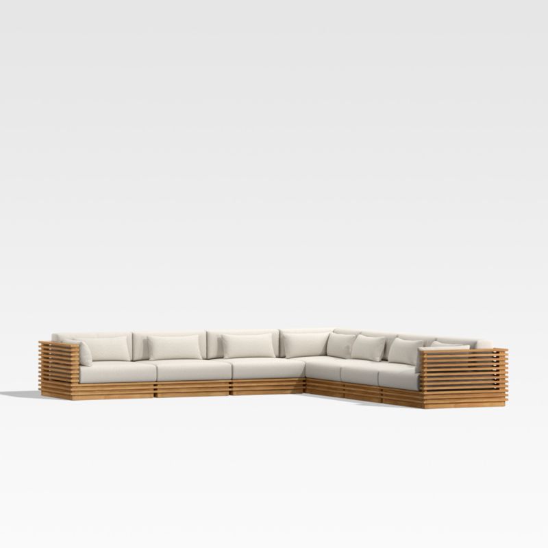 Batten 7-Piece L-Shaped Teak Outdoor Sectional Sofa with Oat Cushions