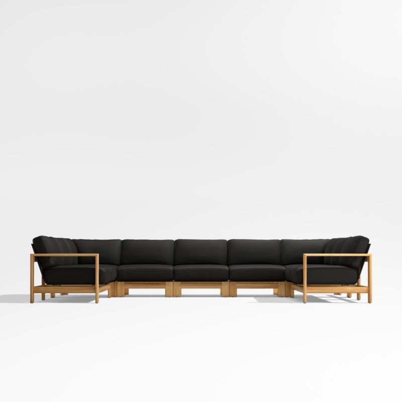 Anguilla Teak 7-Piece U-Shaped Outdoor Sectional Sofa with Black Cushions