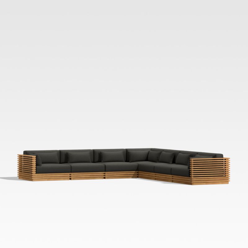 Batten 7-Piece L-Shaped Teak Outdoor Sectional Sofa with Charcoal Cushions