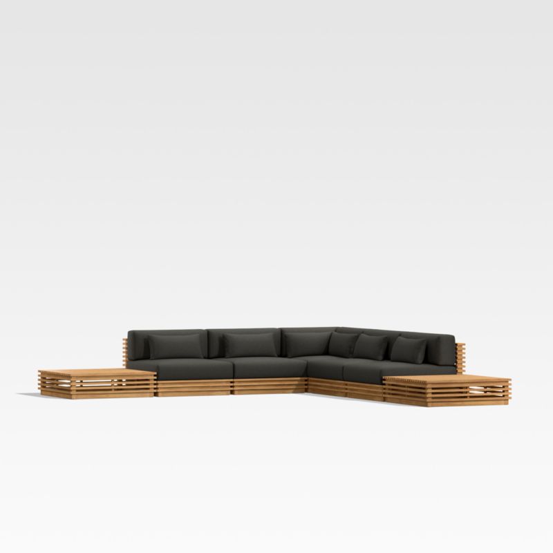 Batten 7-Piece L-Shaped Teak Outdoor Sectional Sofa with Side Coffee Tables & Charcoal Cushions