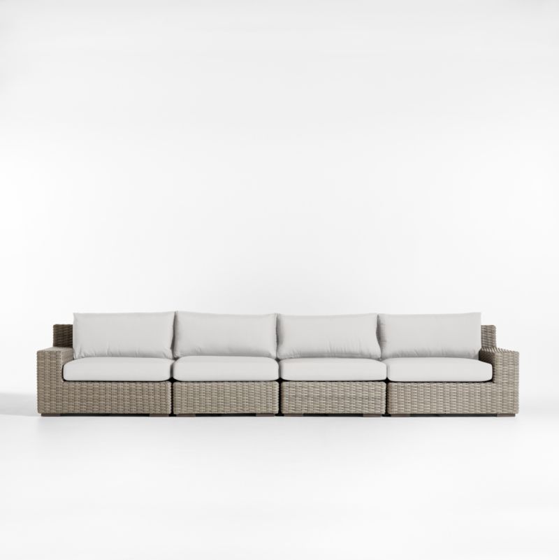 Abaco 146" Grey Resin Wicker 4-Piece Outdoor Sectional Sofa with White Sand Sunbrella ® Cushions