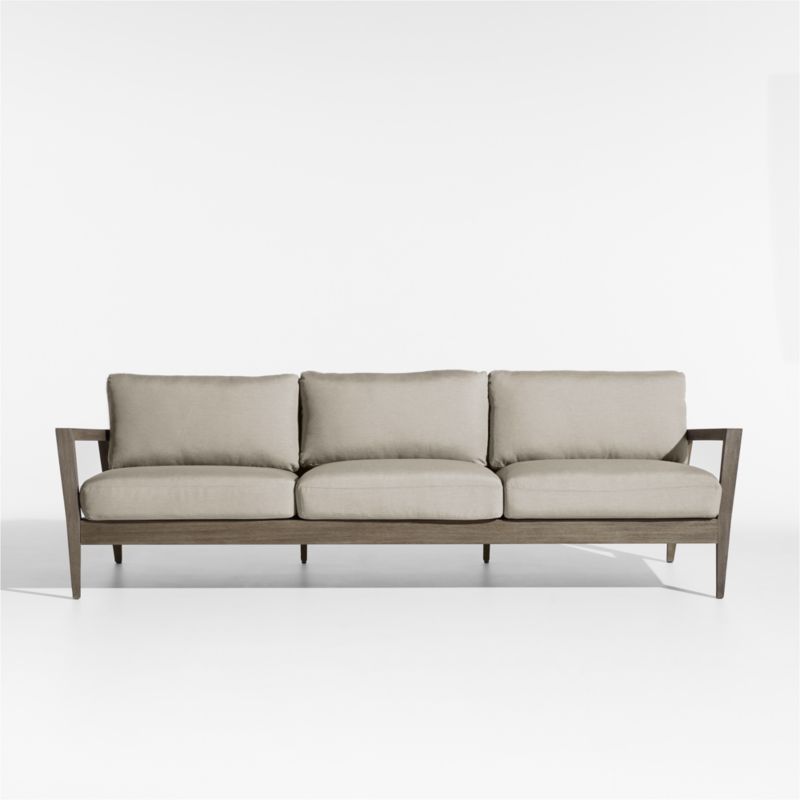 Andorra 97" Weathered Grey Wood Outdoor Sofa with Taupe Cushions