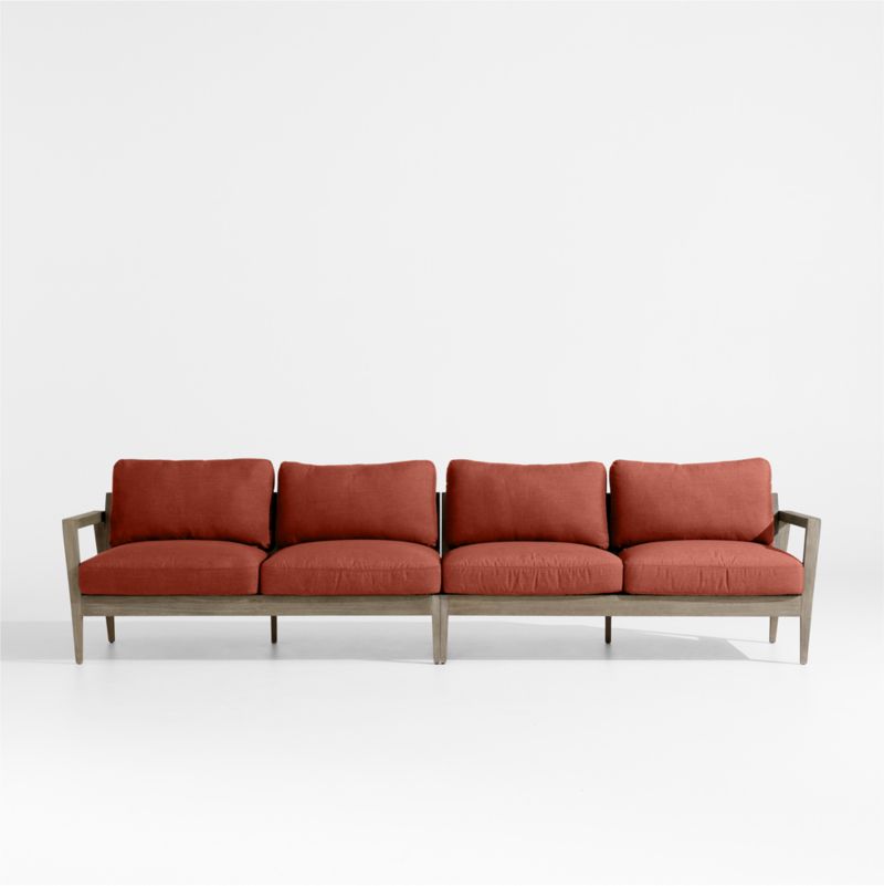Andorra 127" Weathered Grey Wood 2-Piece Outdoor Sofa with Henna Red Sunbrella ® Cushions