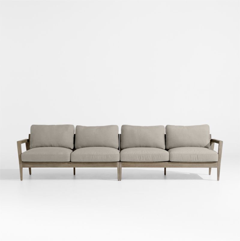 Andorra 127" Weathered Grey Wood 2-Piece Outdoor Sofa with Silver Sunbrella ® Cushions