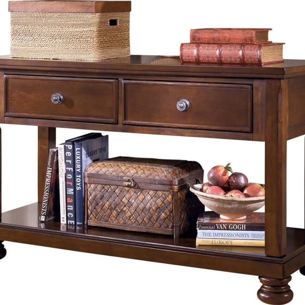 Signature Design by Ashley Casual Porter Sofa/Console Table Rustic Brown