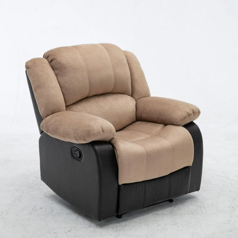 Nathaniel Home Champion Manual Single Reclining Sofa, PU Leather Upholstered Couch, Tufted Recliner, Plush Scoop Seating, for Living Room Home Theater, Beige
