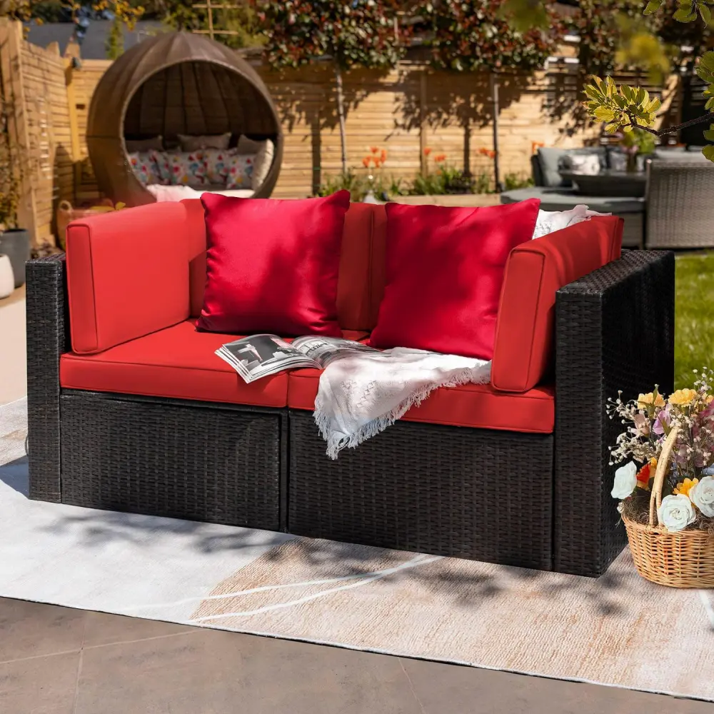 Lacoo 2 Pieces Patio Loveseat Outdoor Sectional Sofa Patio Conversation Set for Small Area, Red