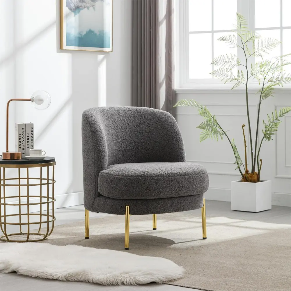 Aukfa Upholstered Accent Chair for Living Room, Curved Backrest Reading Chair Single Sofa, Gray