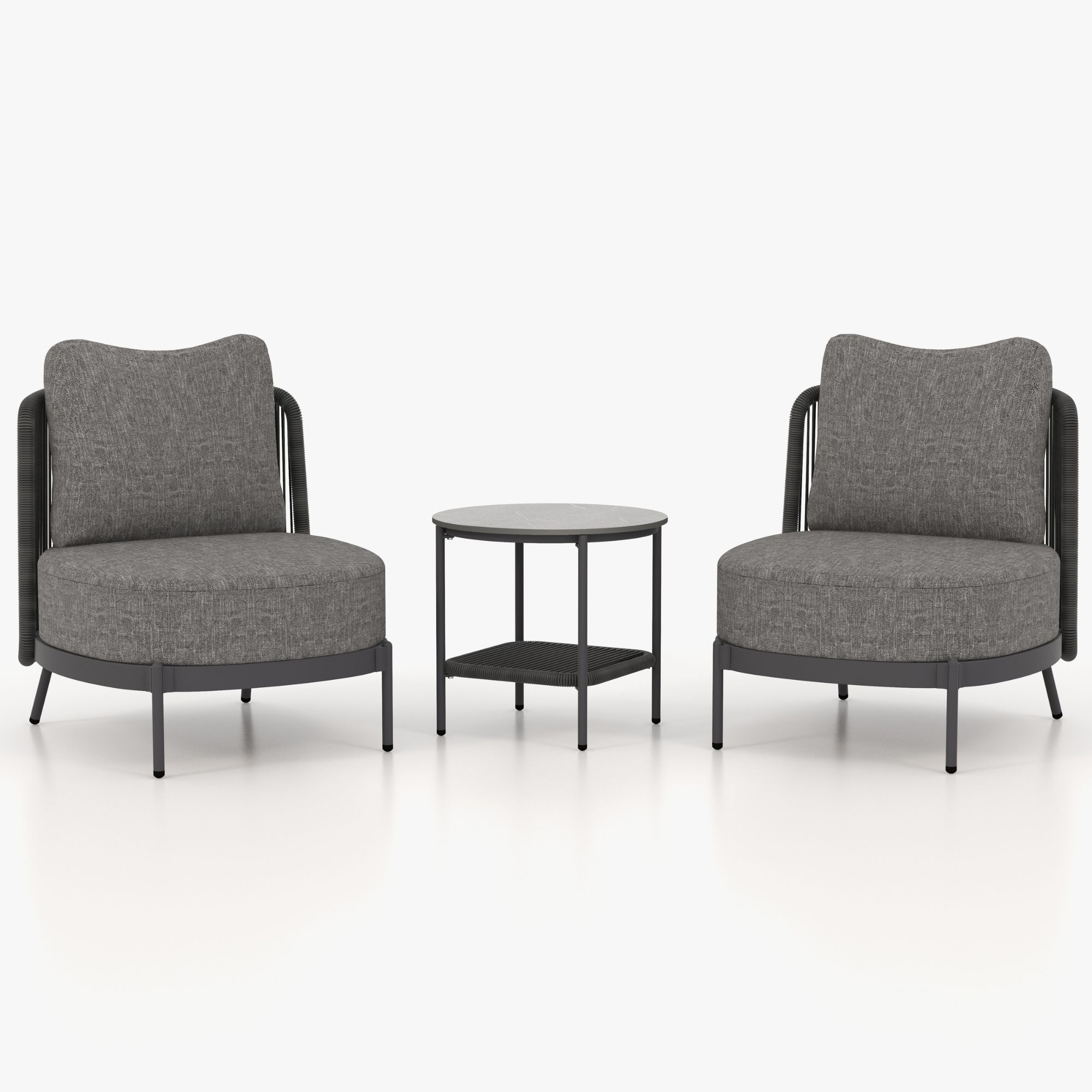 Mondawe Patio Wicker Single Sofa Chairs Table Set, With Cushions In Aluminum Frame For Outdoor (Set of 3)