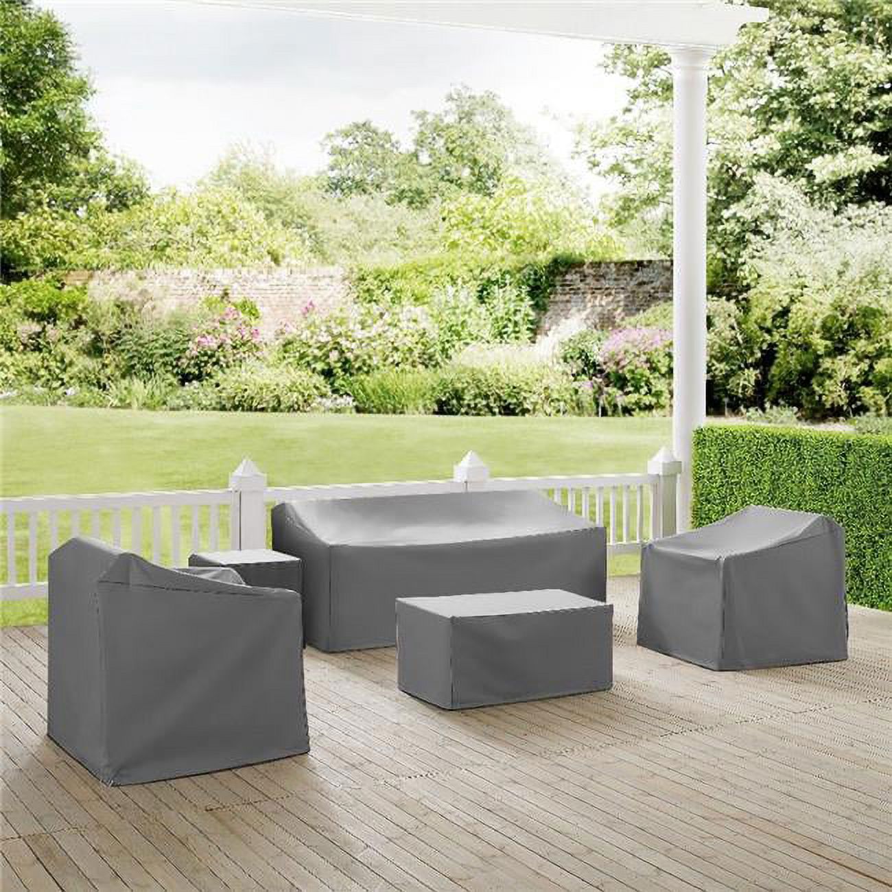 Crosley Furniture Covers 5-Pc Traditional Vinyl Outdoor Sofa Cover Set in Gray