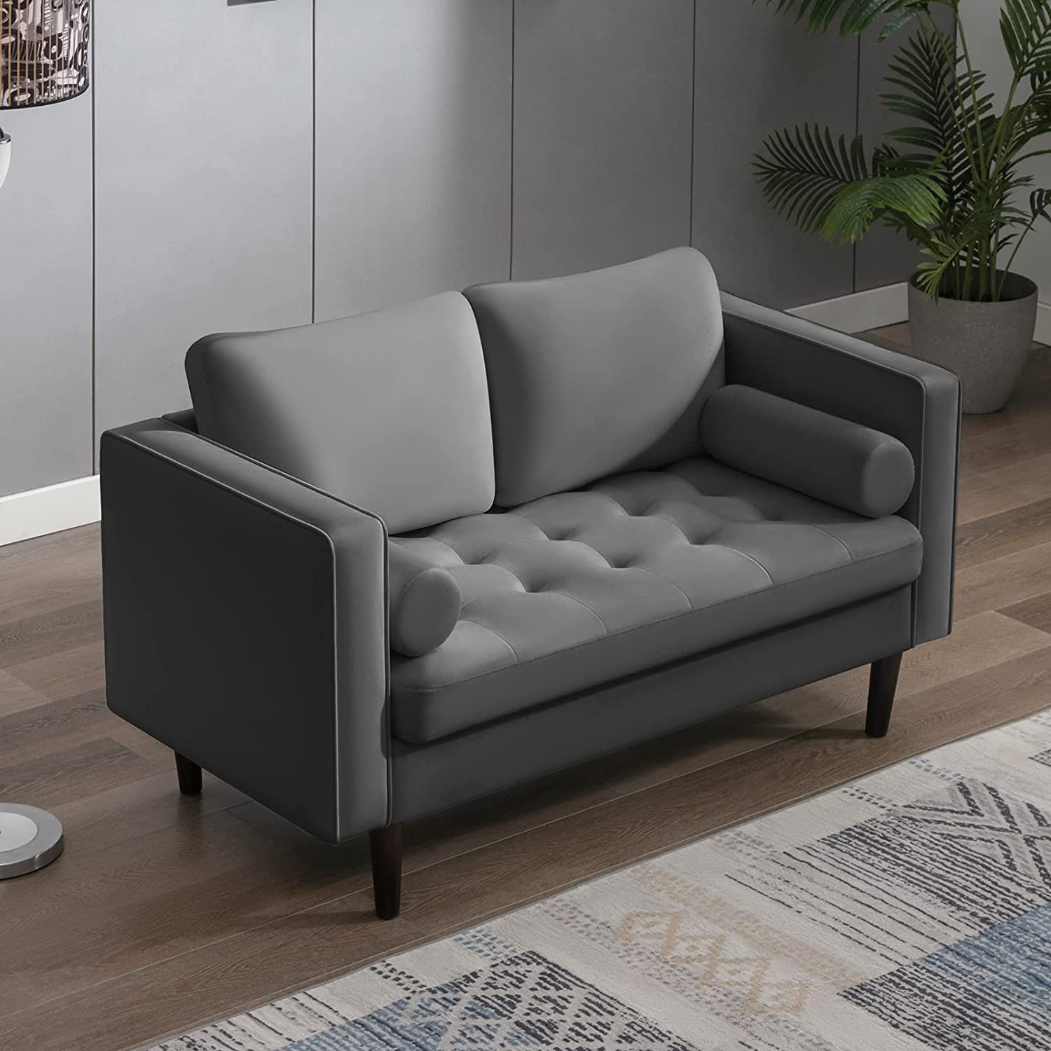 ZAFLY Modern Loveseat, 2 Seat Sofa Couch with Upholstered Fabric for Living Room, Queen Size Sleeper Sofa Bed Couch, Dark Grey