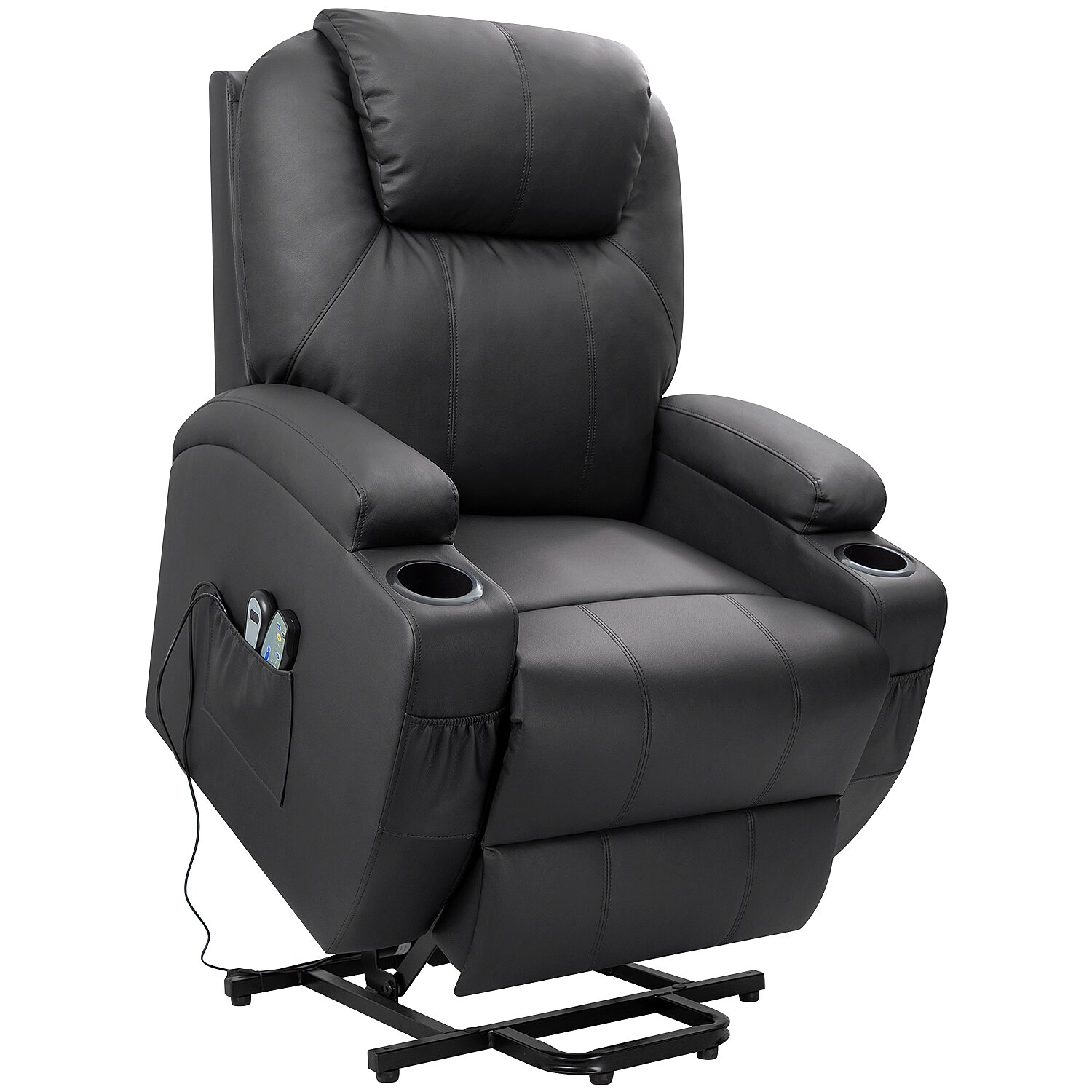 Victal Power Lift Recliner Chair with Massage and Heating Functions, PU Leather Sofa with Remote Control and Two Cup Holders, Suitable for Living Room, 32" L x 28" W x 42" H,Black