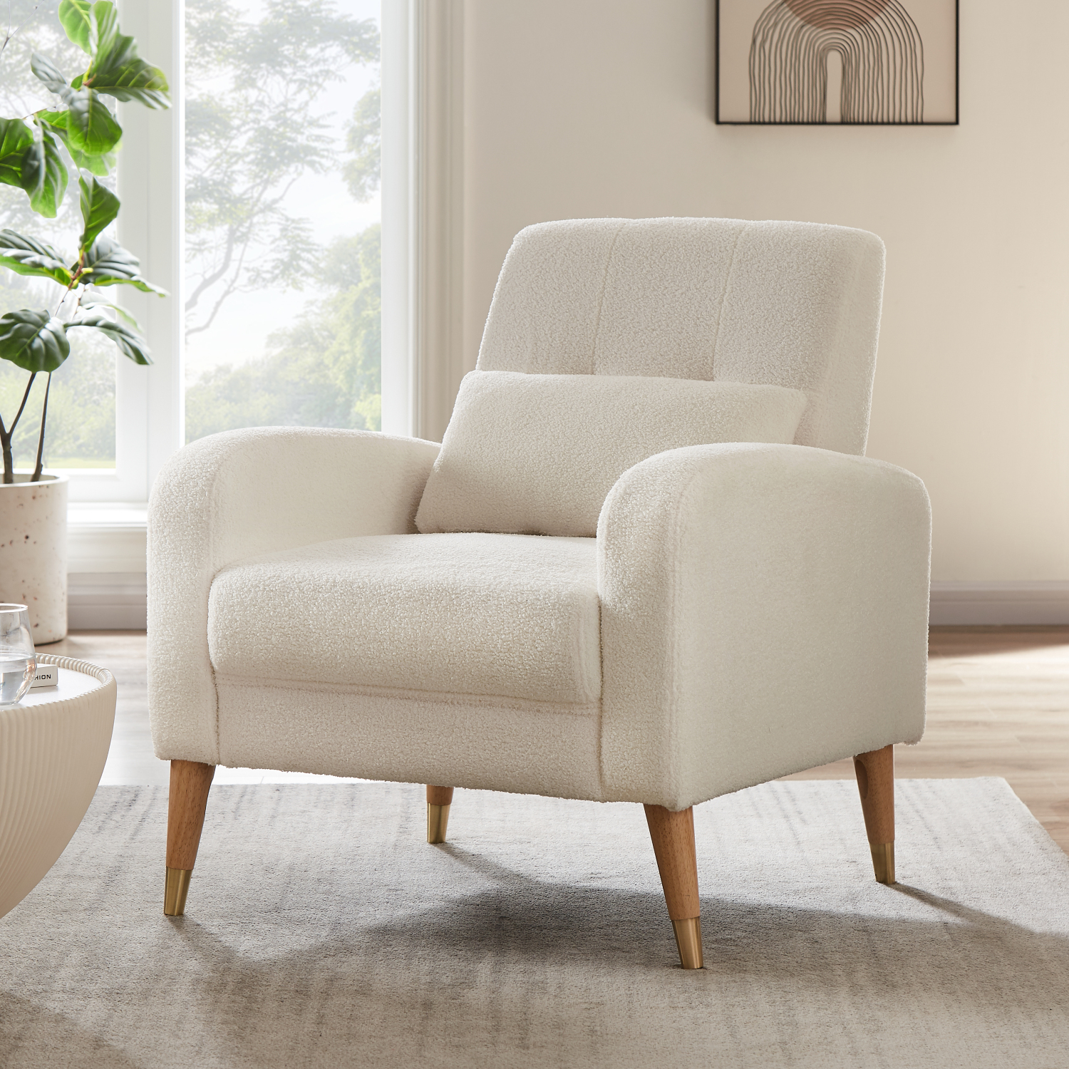 Holaki Modern Accent Chair, Upholstered Single Sofa Chair Sherpa Arm Chair for Living Room and Bedroom, Comfy Armchair with Metal Legs, White Fabric