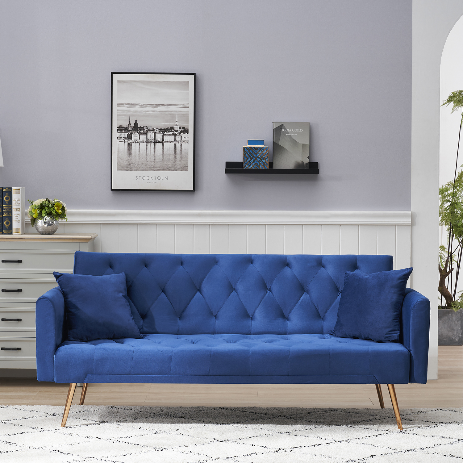 Kadyn 71" Futon Couch, Convertible Double Sofa Bed for Compact Living Space, Modern Velvet Futon Sofa Bed for Living Room, Blue