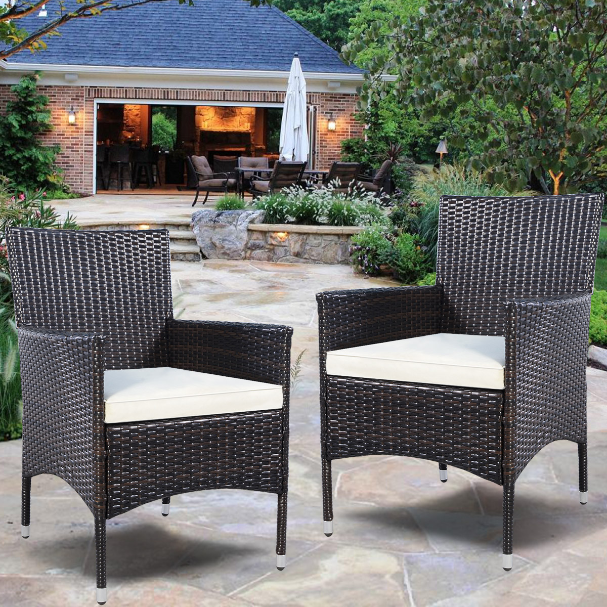 Patiojoy 2PCS Outdoor Patio Chair Garden Backyard Rattan Wicker Sofa w/Cushions