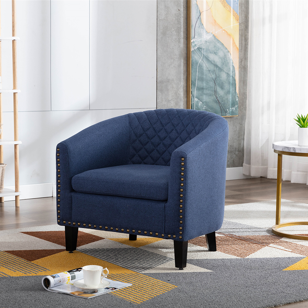 CUH Soft Nailheads Accent Chair PU Indoor Ergonomics Lounge Chairs Modern Furniture Patio Sofa Navy Blue