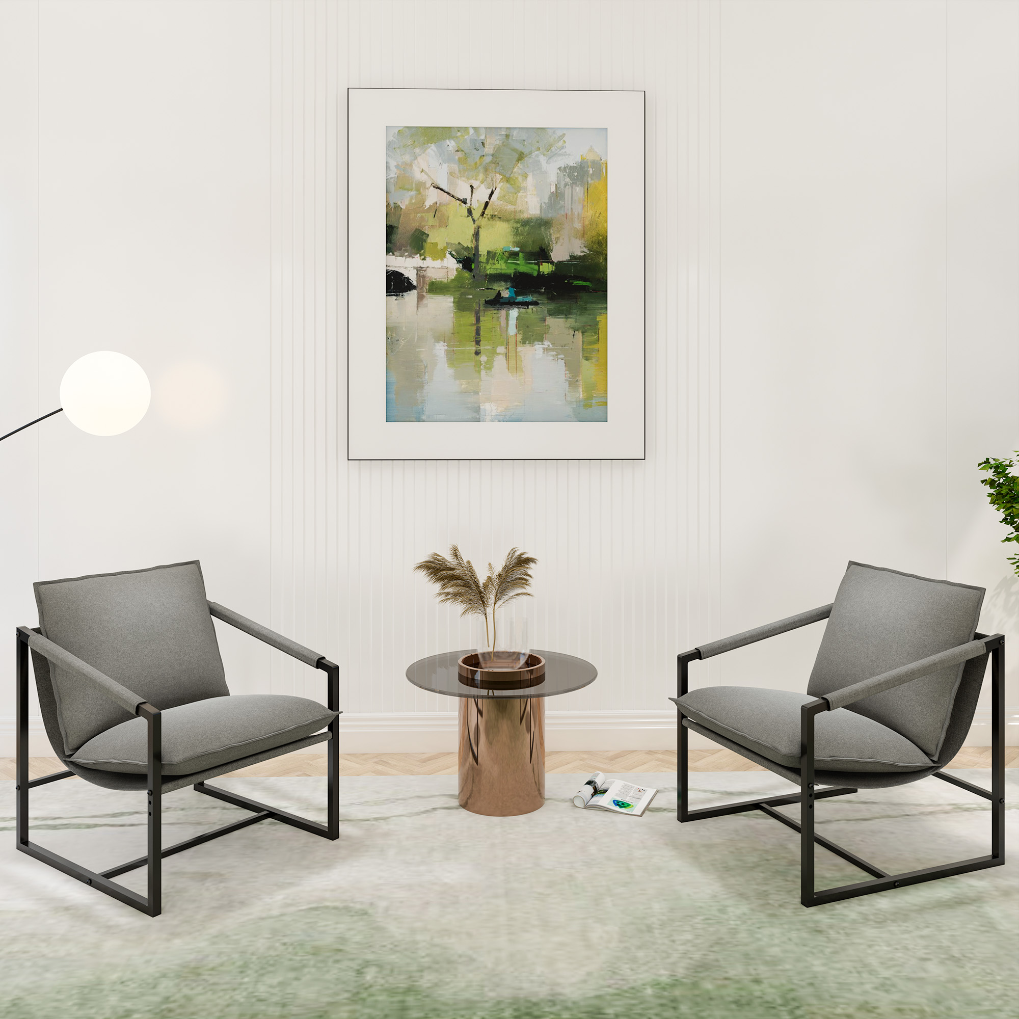 HNEBC Sling Accent Chair Set of 2, Modern Chairs with 2 Removable Soft Cushion, Comfy Metal Framed Armchair Set 2 and Seat Cushion Sofa Chairs(2PC,Light Gray)
