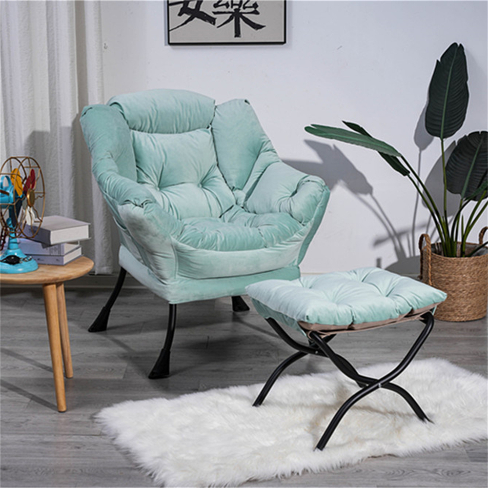 Lazy Chair with Ottoman, Modern Lounge Accent Chair with Armrests and Side Pocket, Leisure Upholstered Sofa Chair Cozy Reading Chair with Footrest Set for Living Room Bedroom, Green