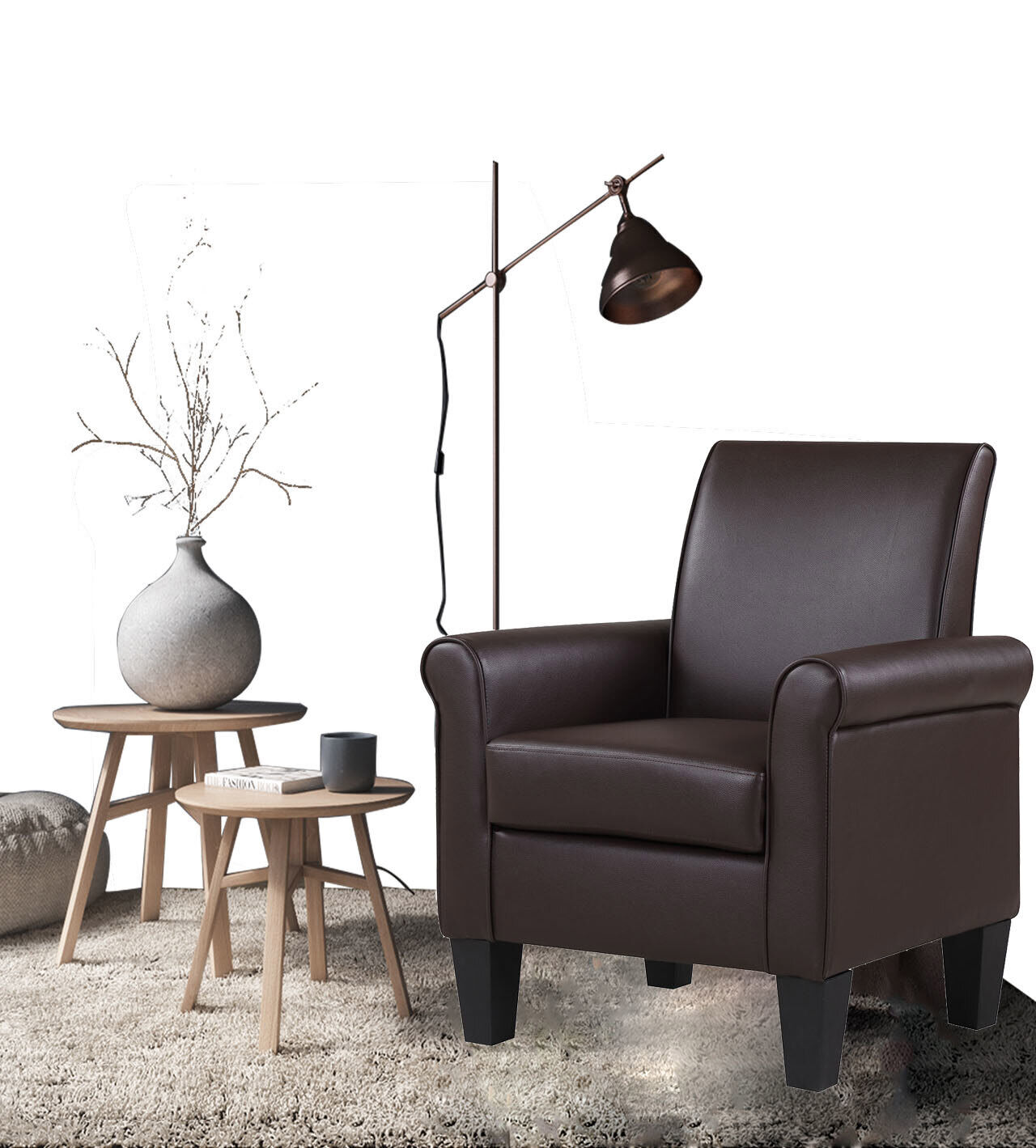 Espresso Modern Faux Leather Accent Chair Upholstered Living Room Arm Chairs Single Sofa, Brown