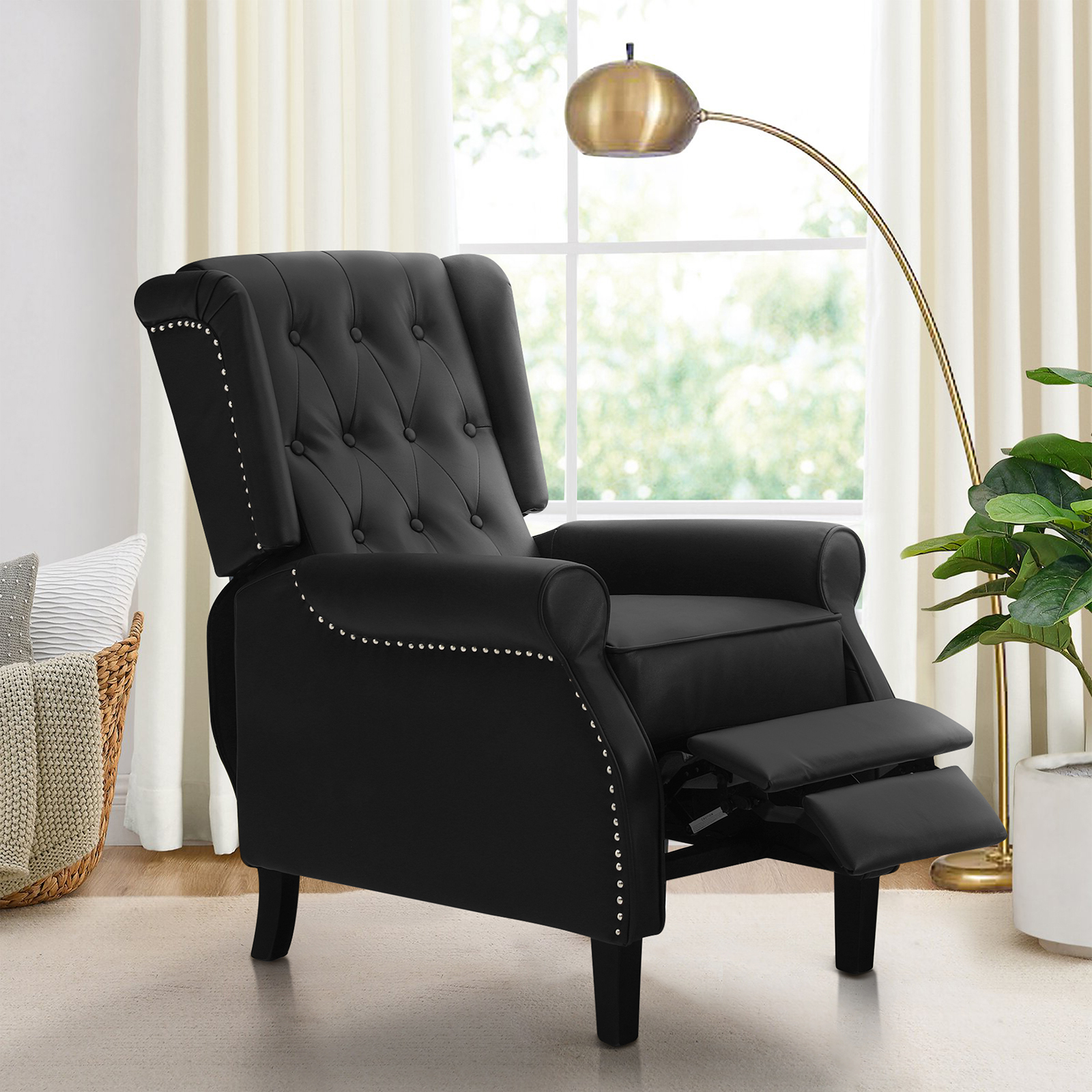 Wingback Recliner Chair Leather Single Vintage Upholstered Sofa Home Theater Seating for Living Room(Black Leather)