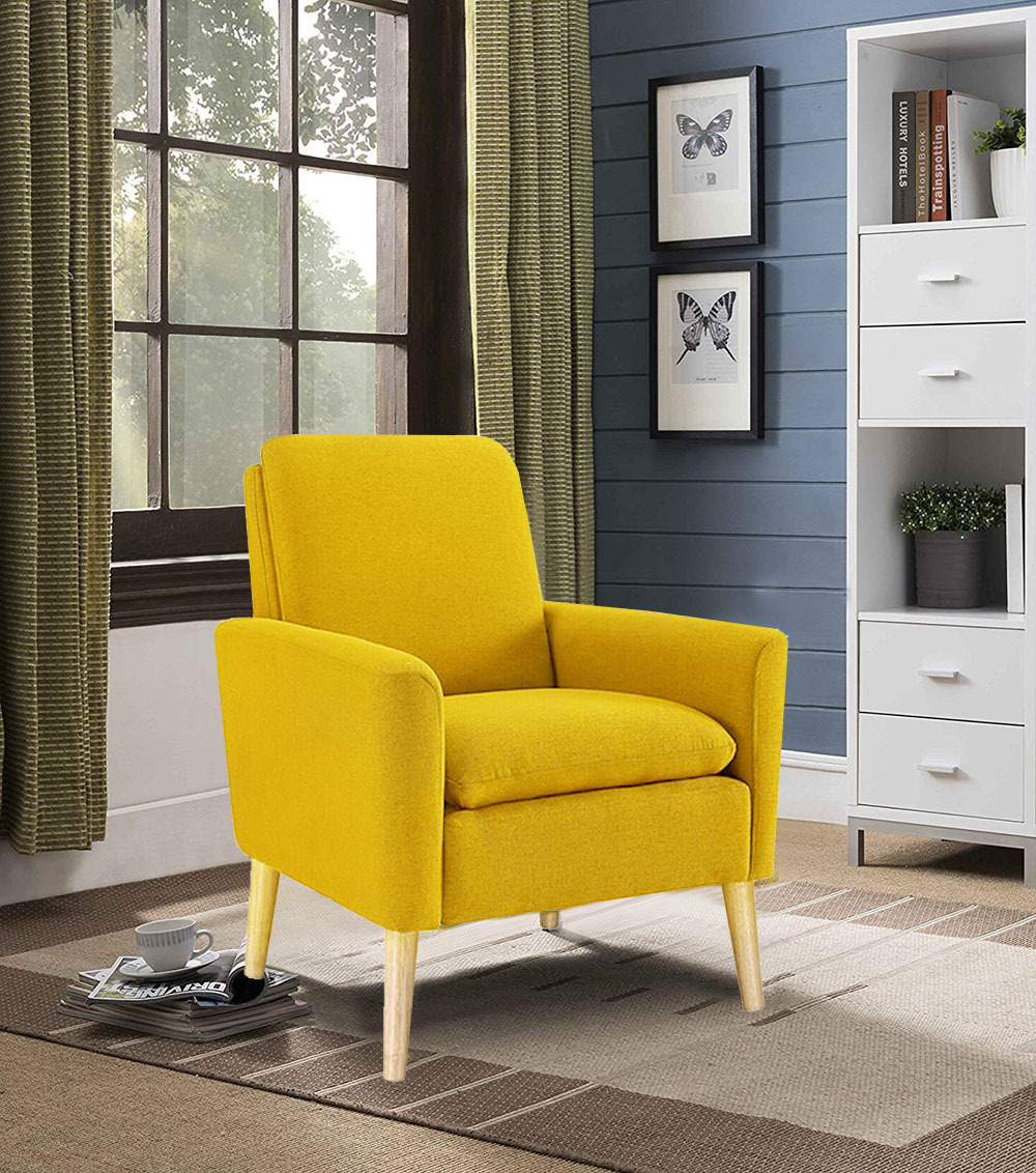 Dazone Modern Accent Fabric Chair Single Sofa Comfy Upholstered Arm Chair Living Room Yellow