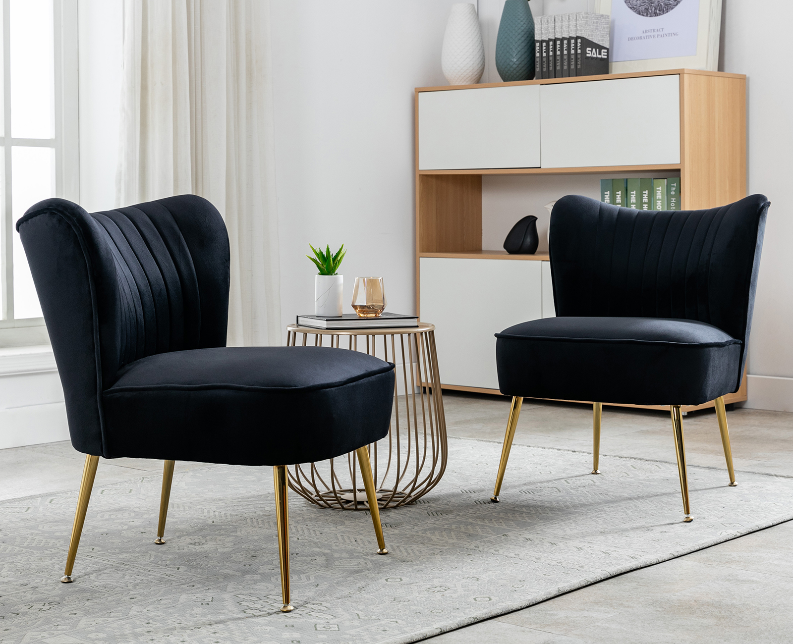 Guyou Modern Accent Chair Set of 2, Armless Slipper Chair Velvet Upholstered Lounge Chair, Wingback Single Sofa Side Chair with Gold Legs for Living Room Bedroom, Black