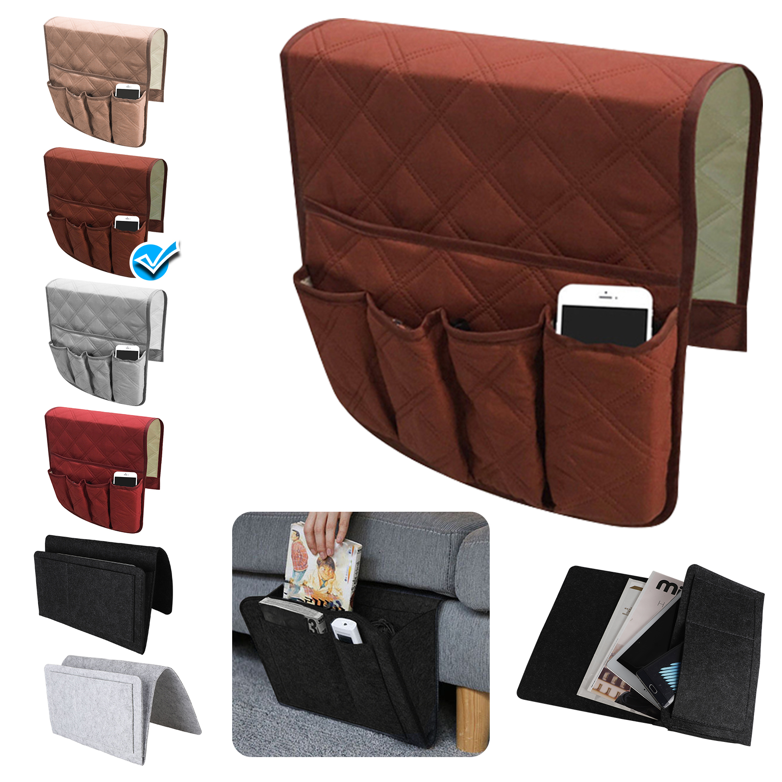 EEEkit Couch Sofa Chair Armrest Remote Control Storage Organizer Holder, Non-Slip Armchair Caddy Pocket Holder Organizer with 5 Pockets for Phone, Book, Magazines, Ipad, TV Remotes