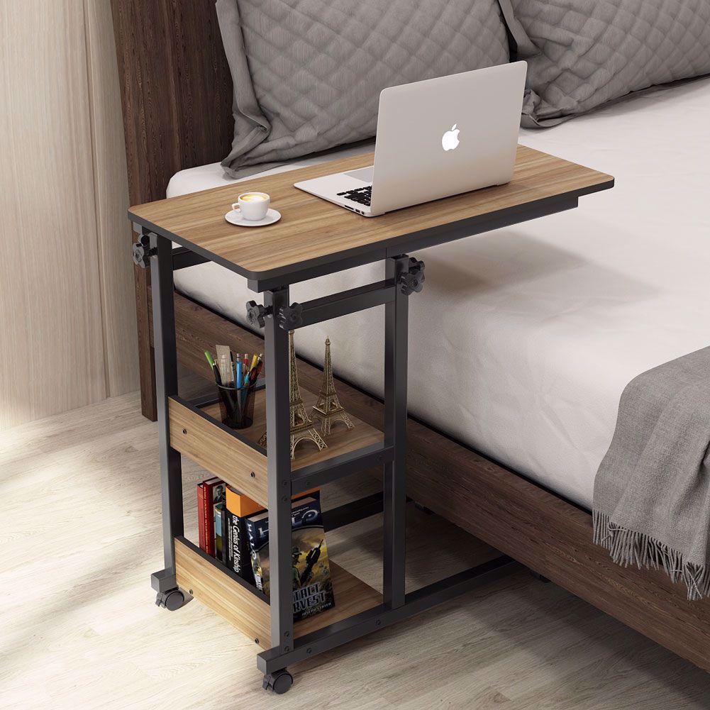 Side Sofa End Table Wood Desk TV Computer Coffee Tray Slide Under Couch with Drawer