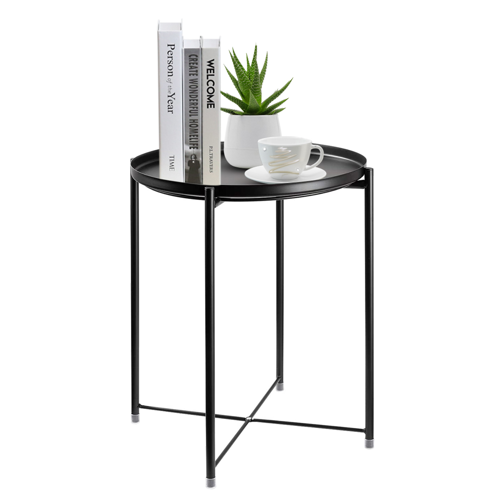 End Table, Metal Side Table Waterproof Small Coffee Table Sofa Side Table with Removable Tray for Living Room Bedroom Balcony and Office (Black)