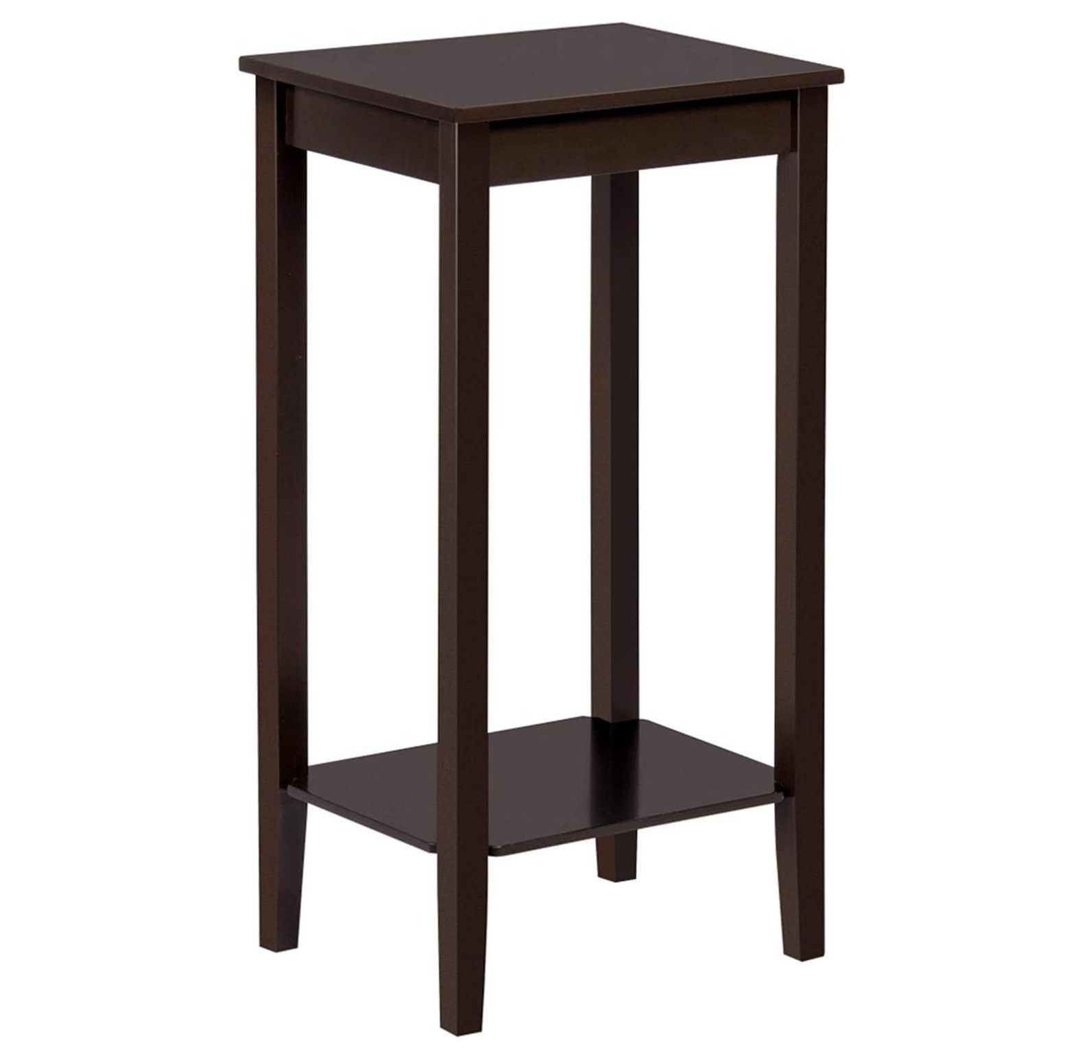 CintBllTer 2-Tier Tall End Table with Storage Shelf and Solid Wood Legs, Sofa Side Table Telephone Table for Living Room/Couch/Hallway/Small Spaces, D12xW15xH29 Inches, Dark Coffee