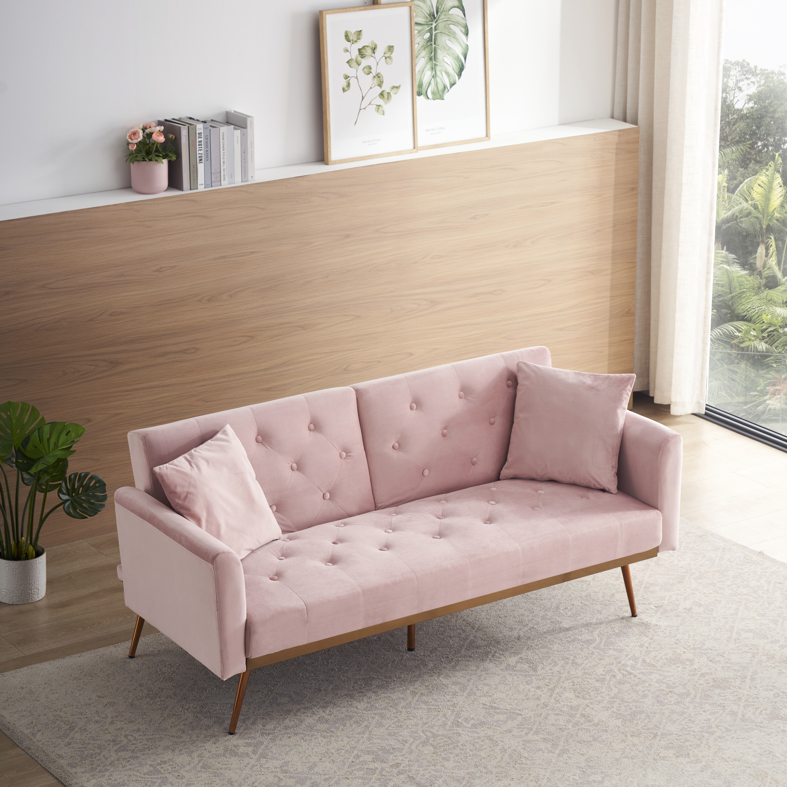 Pink velvet nail head sofa bed with throw pillow and midfoot 03325