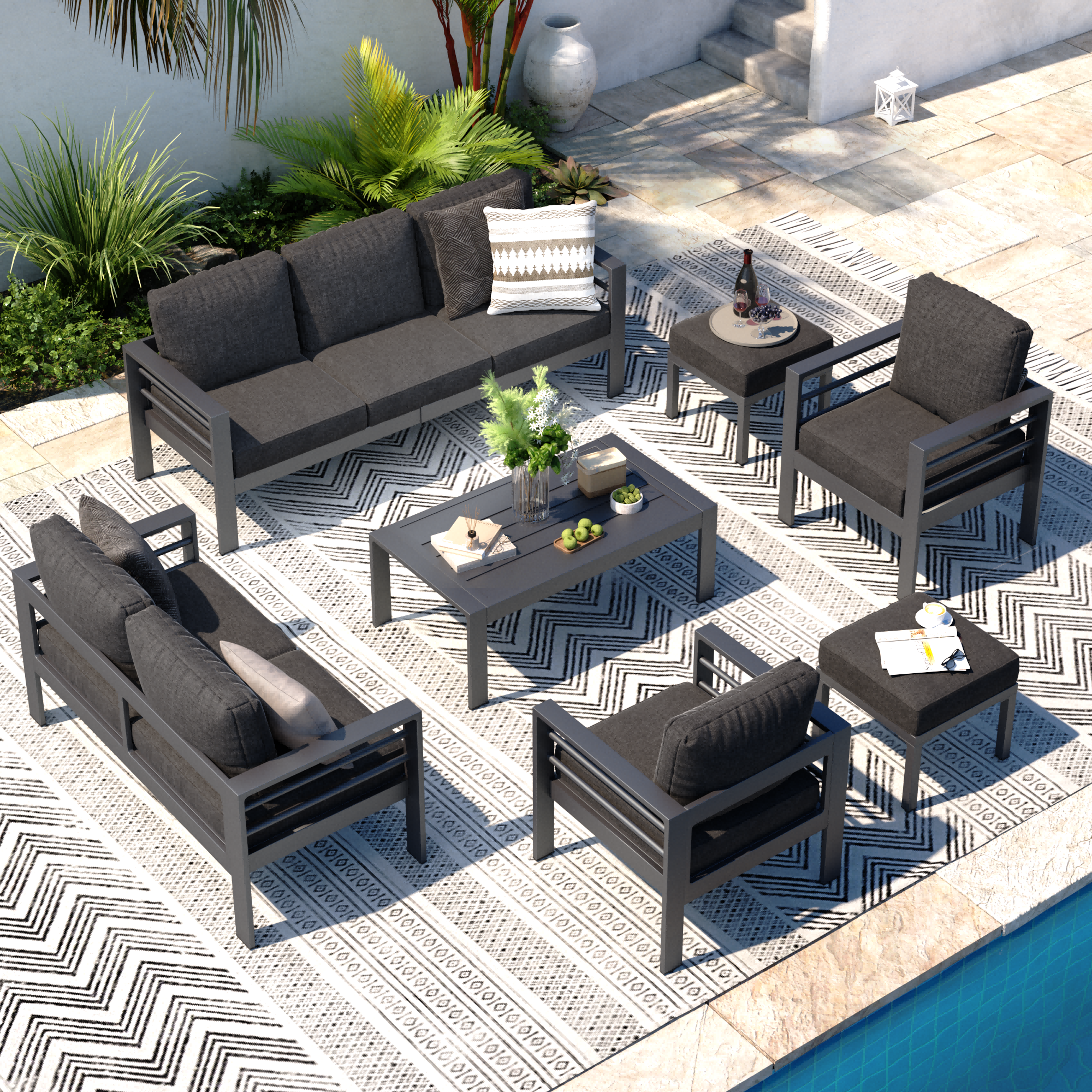 AECOJOY Aluminum Outdoor Furniture Set 7 Pieces Sectional Sofa Patio Conversation Set - Dark Gray