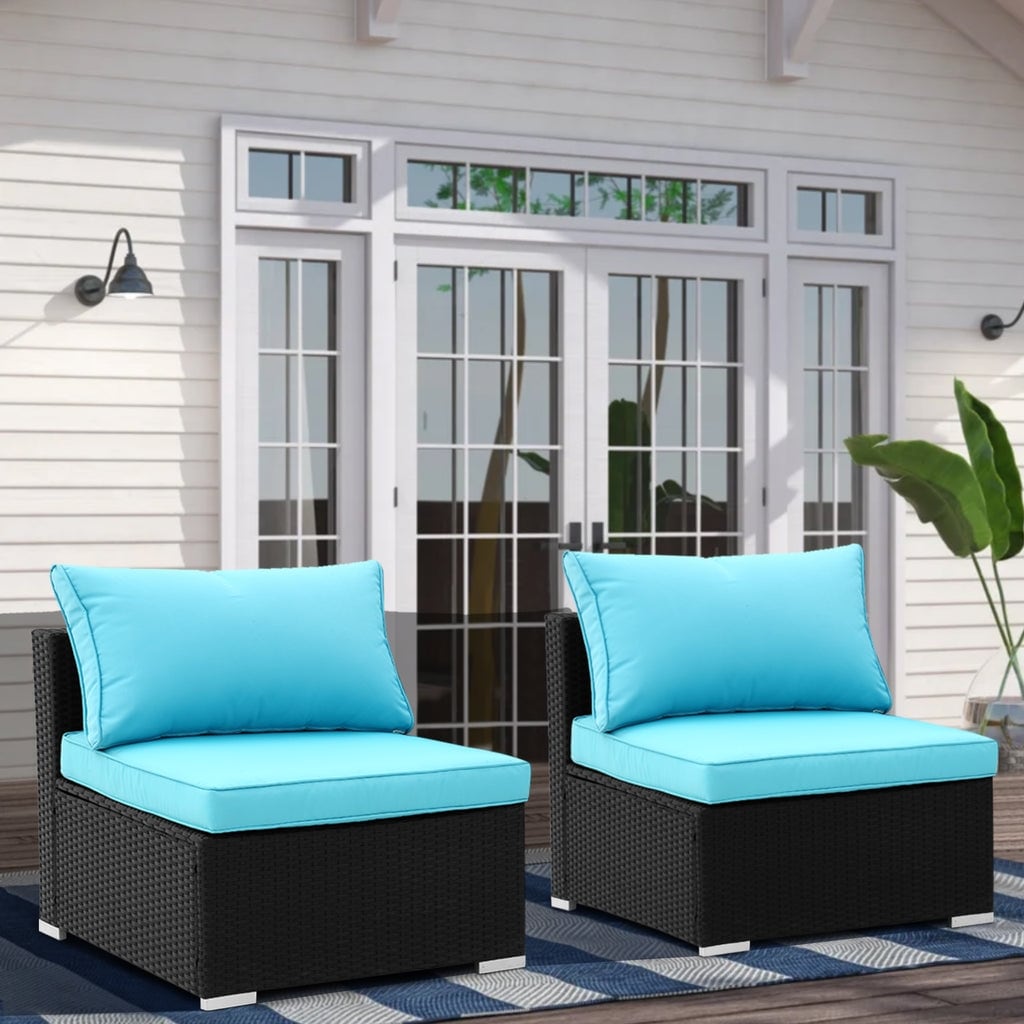 Zenova Rattan 2 or 7-piece Wicker Sofa Conversation Set Outdoor Patio Seating Sofa Set Blue 2-piece 2